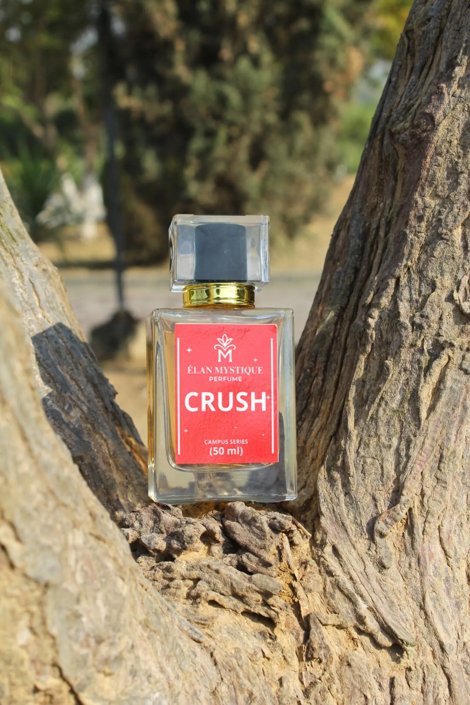 CRUSH is a wild burst of red fruits and white florals laced with patchouli and vanilla. It’s playful, daring, and impossible to forget — just like your first unforgettable campus spark.