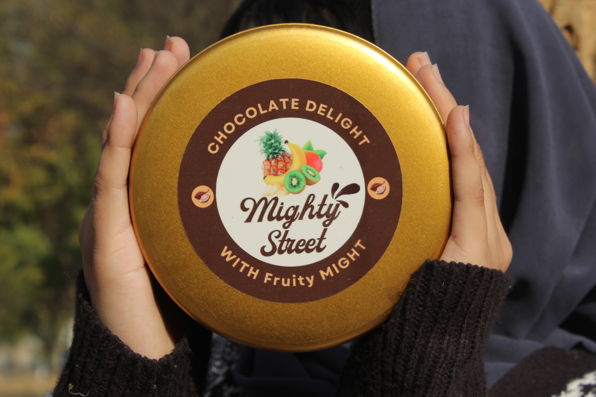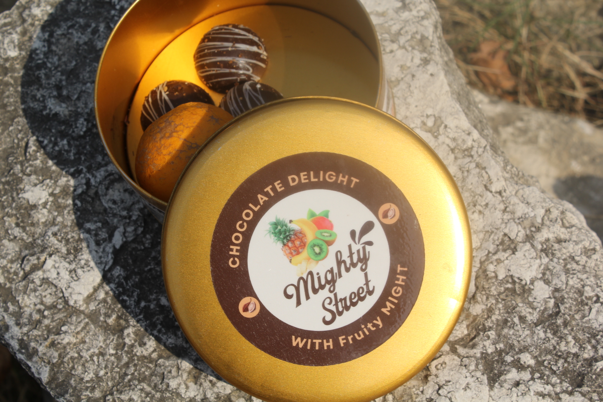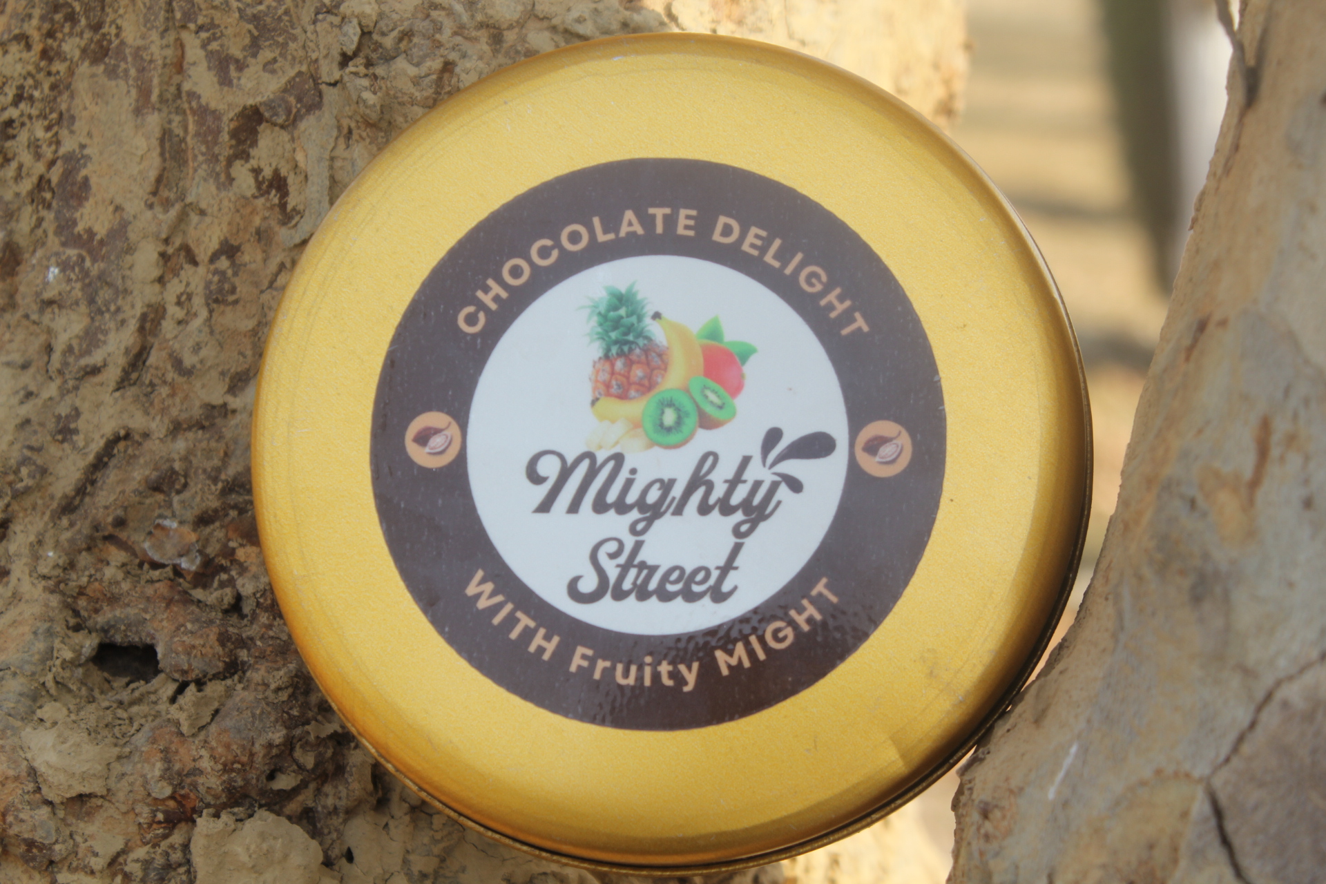 “Chocolate delight with fruity might.”