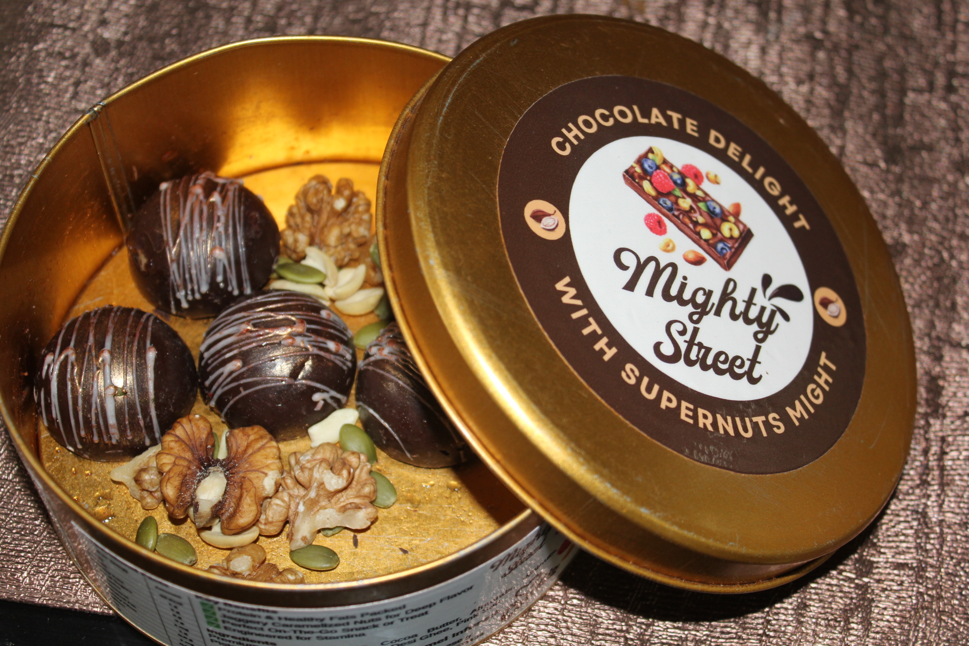 | Total Fat | ~3 g | Healthy fats from nuts, ghee, chocolate |